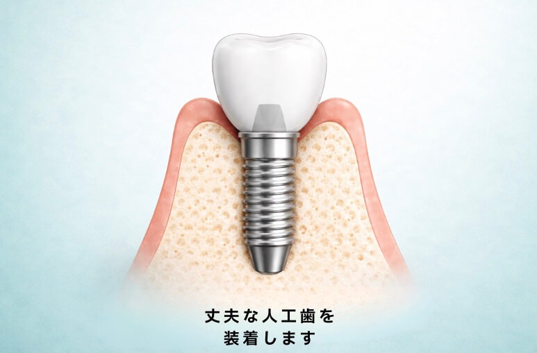 インプラントを埋入手術後、即日同時に上部構造の仮歯まで装着することができるので、治療期間を短縮できます。
