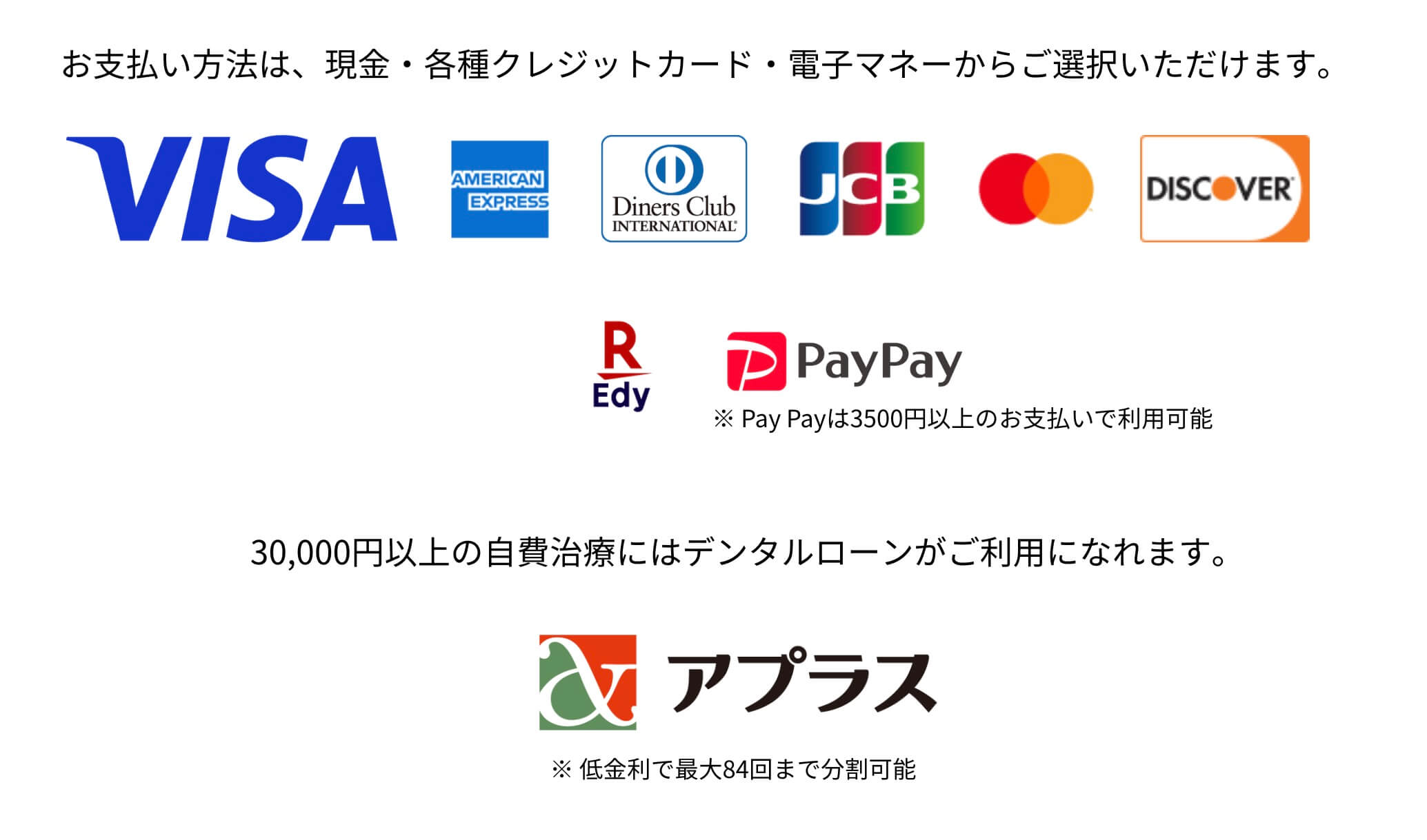 ※ 矯正治療費は、デンタルローン他、無金利タイプ院内分割払い(分割回数制限あり)もご利用になれます。